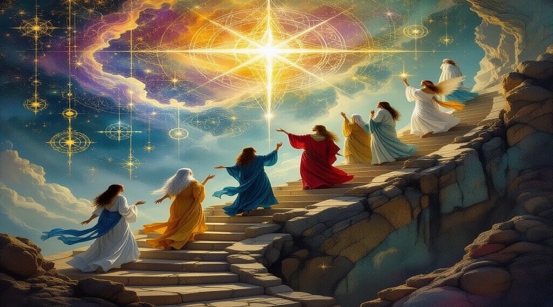 Ještě několik poznámek o stupních. Stejně jako každá hermetická společnost, která duchovně vychází z gnostických sekt, a která si navíc činí nároky na zlaté rytířské ostruhy, i rosenkruciánství se zakládalo na vzestupné stupnici tajemství. Tyto alegorické stupně (žebříčky) můžeme vidět na starých rytinách, zobrazujících adepta stojícího u paty chrámu. Pro alchymistu představoval každý stupeň určité stadium děni, pro astrologa zodiakální či planetární ideu, pro kabalistu sefirót, pro zednáře stupeň či hodnost.