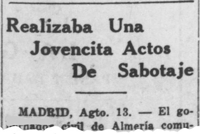 Obr.4 „Mladá dívka dělala sabotáže“ byl typický titulek na titulních stránkách novin oněch let („La Gaceta“, 13. srpna 1945, s. 1).